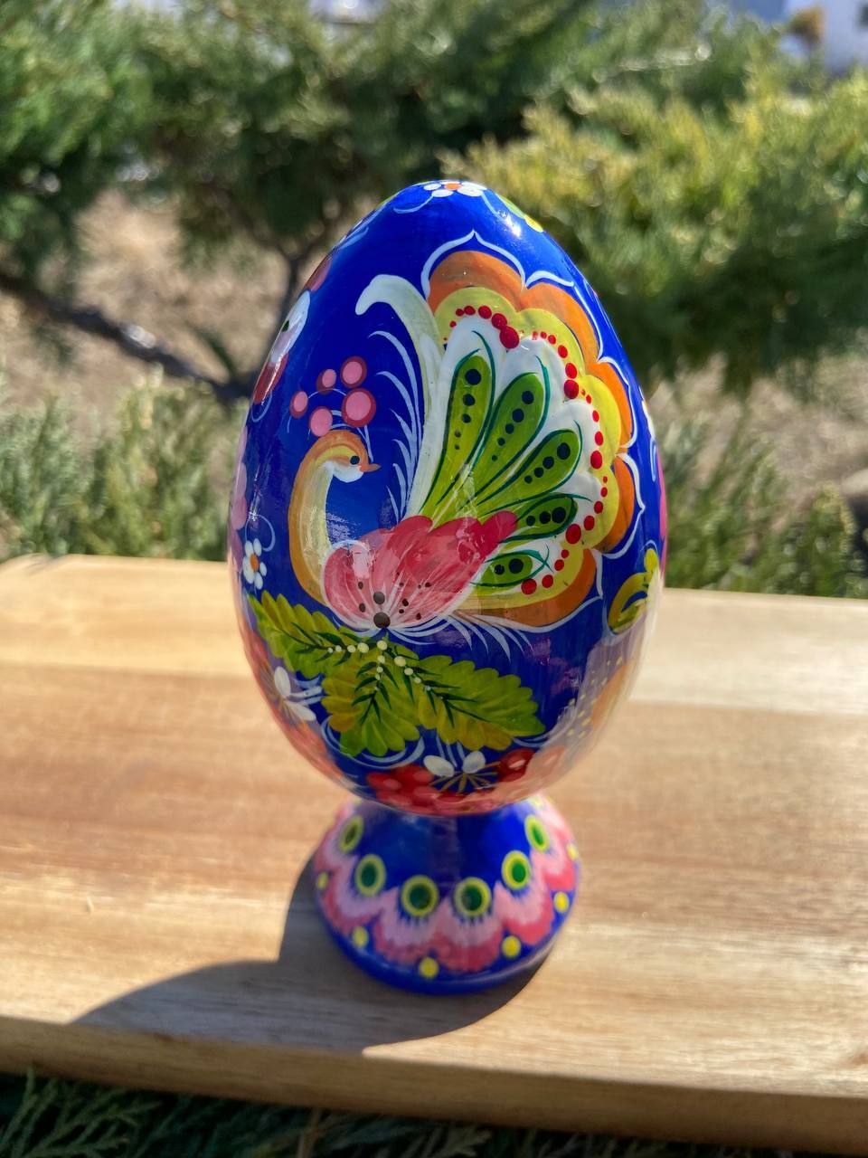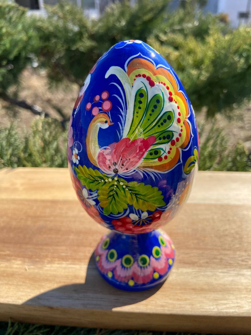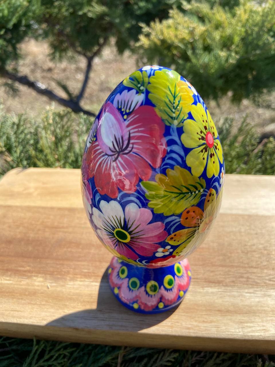 ペトリキウカ塗り 木製プィサンカ・スタンド一体型(イースター・エッグ)14cm(ホメンコ作)