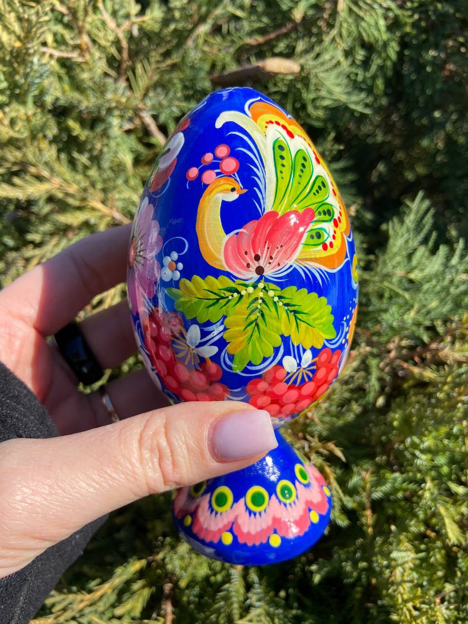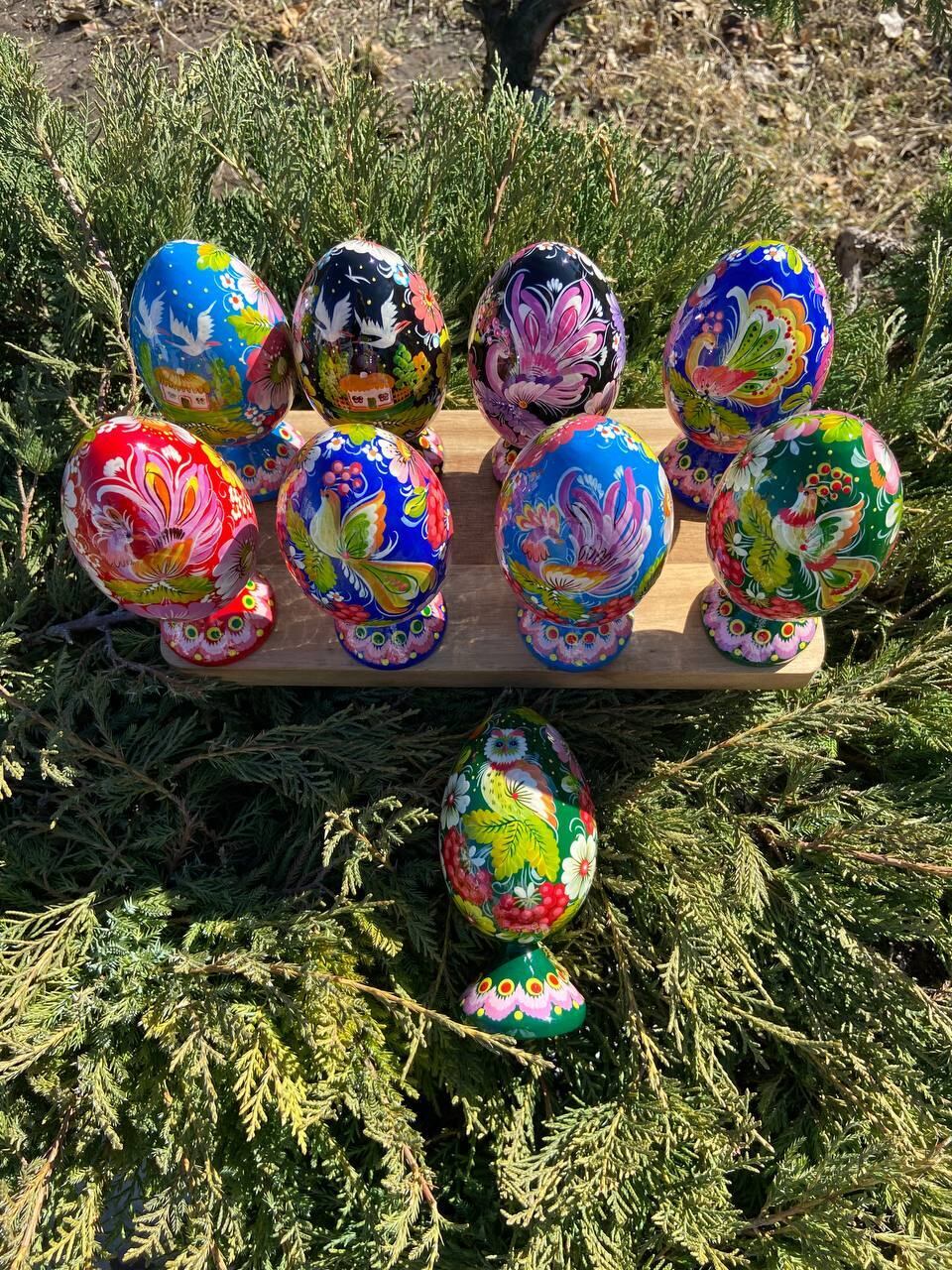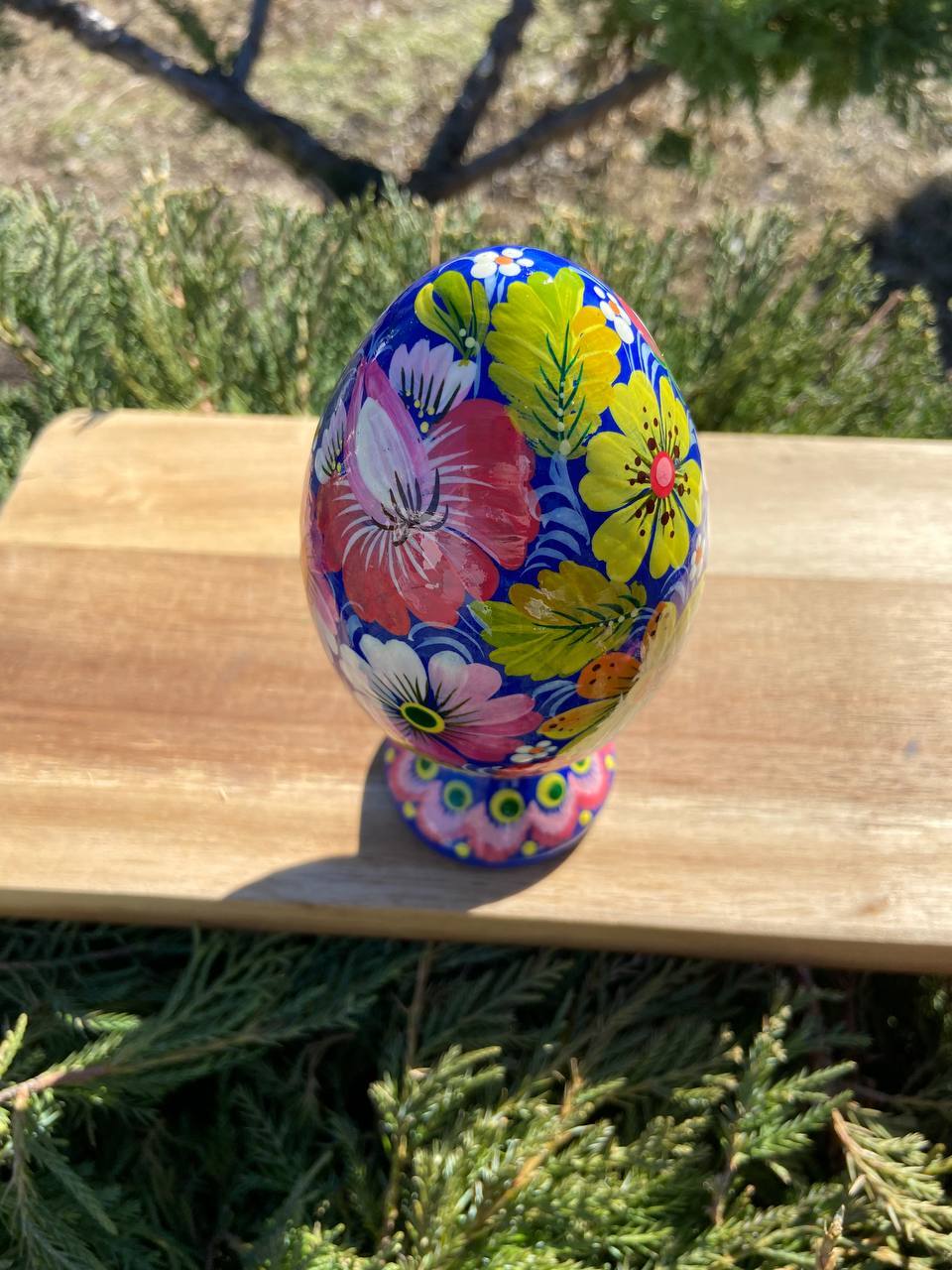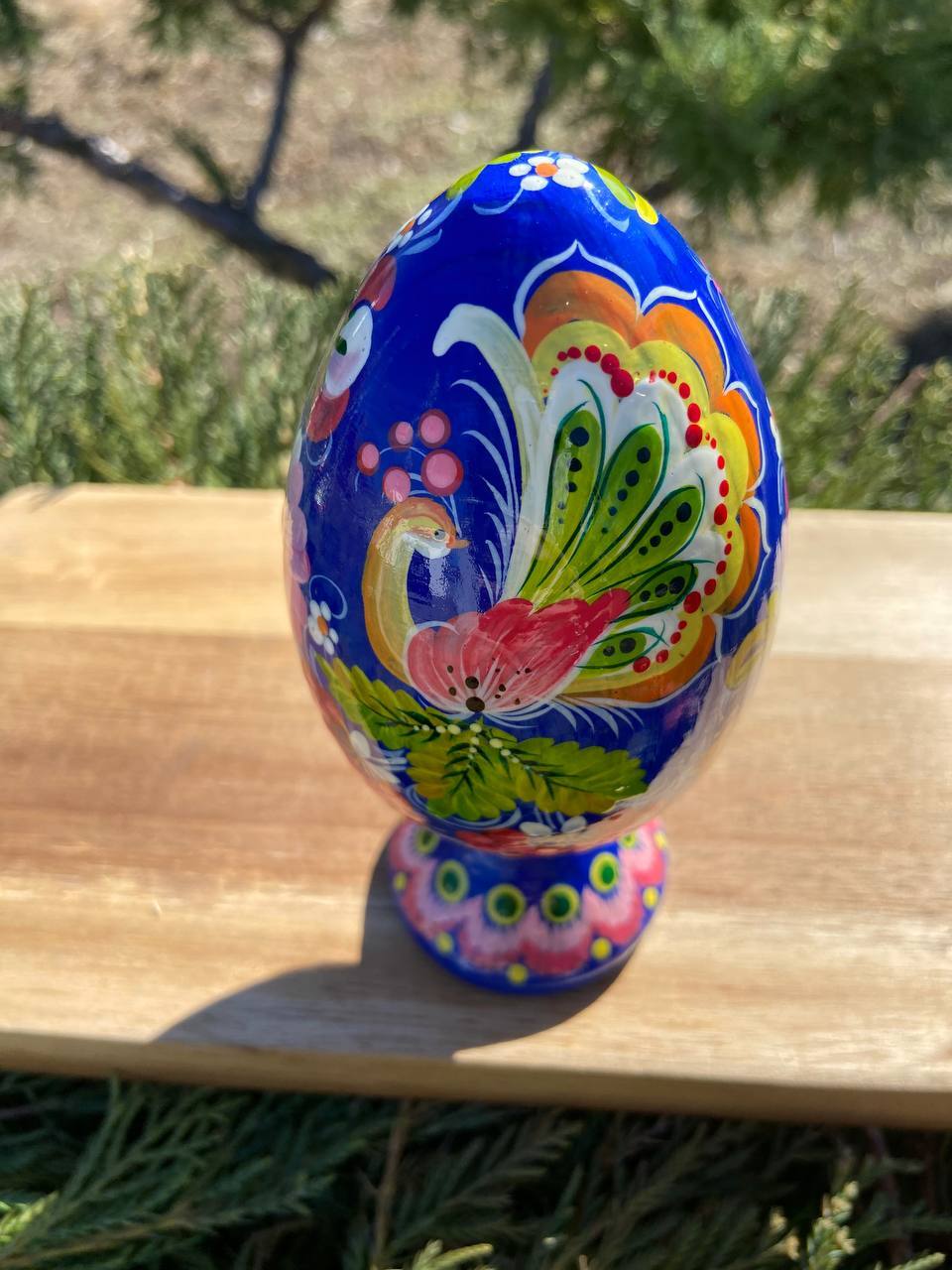 ペトリキウカ塗り 木製プィサンカ・スタンド一体型(イースター・エッグ)14cm(ホメンコ作)