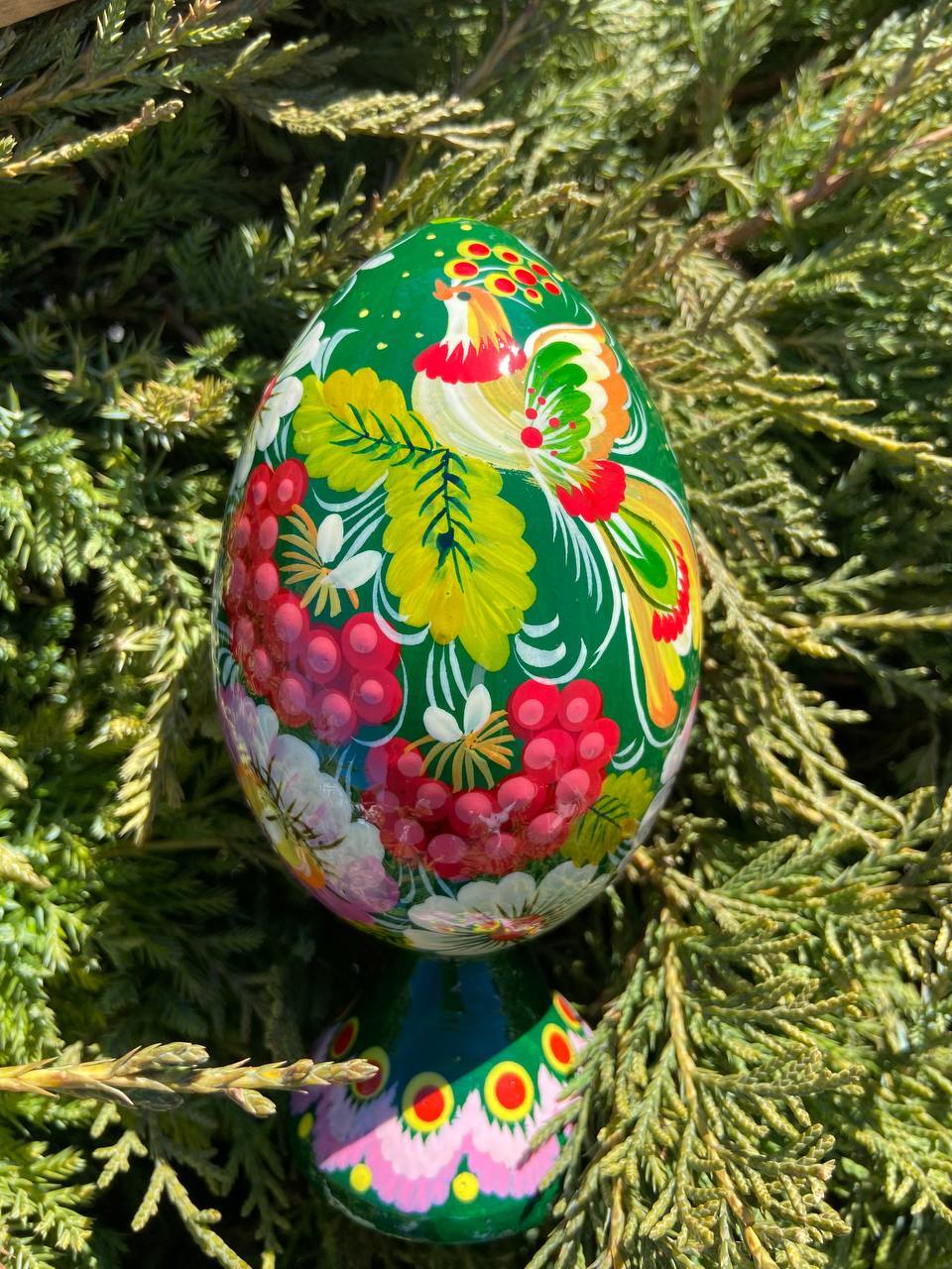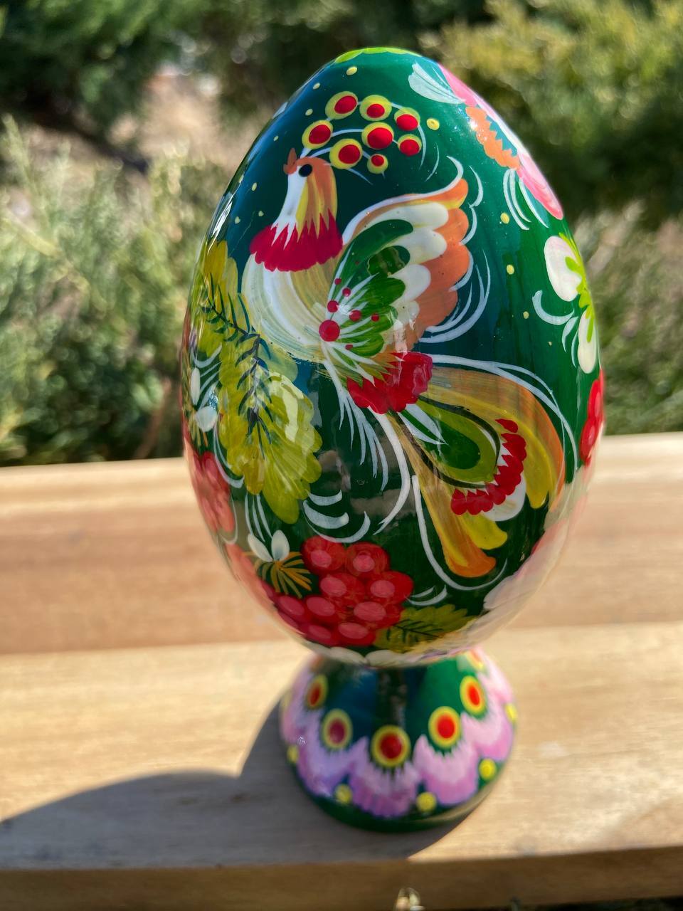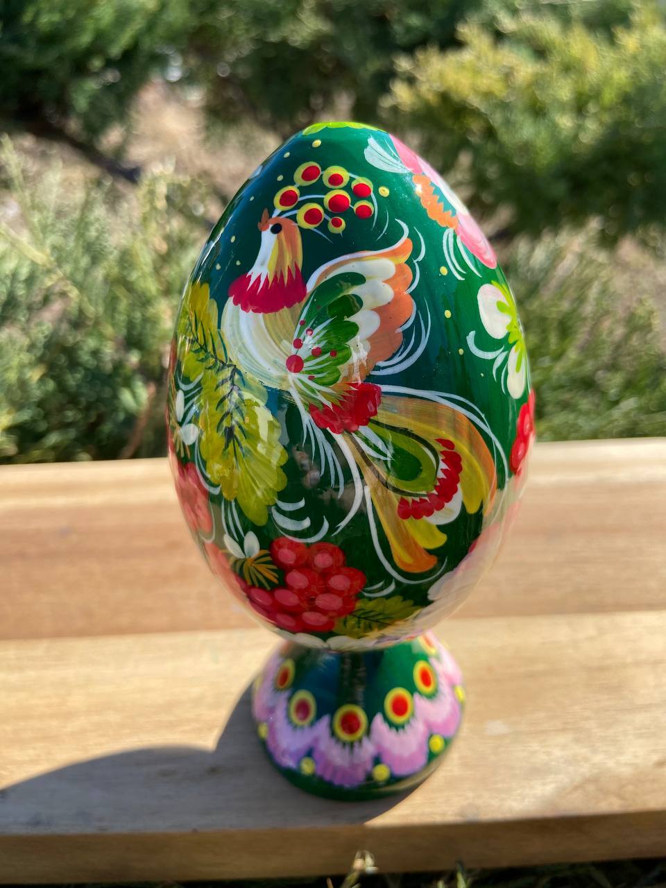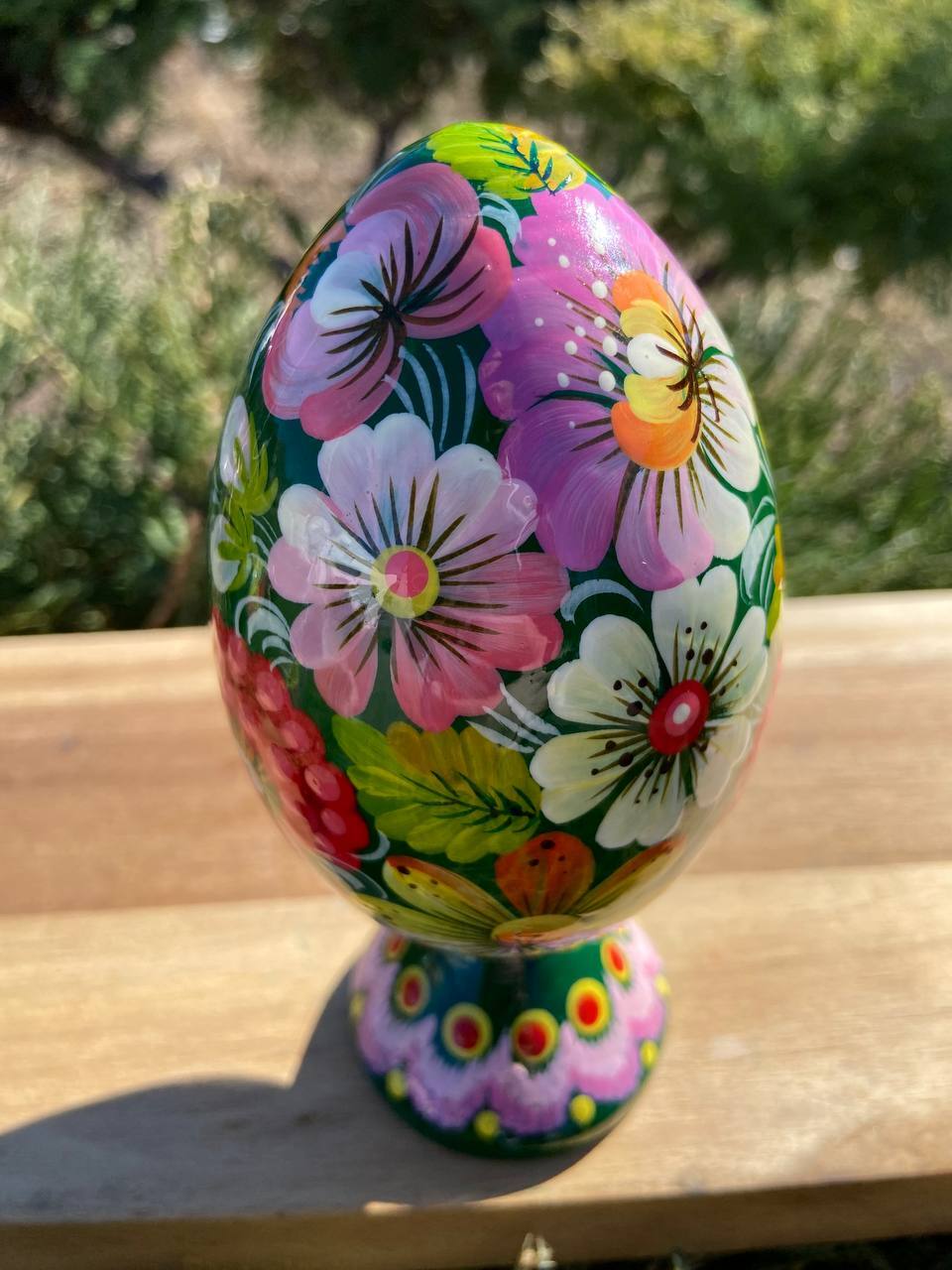 ペトリキウカ塗り 木製プィサンカ・スタンド一体型(イースター・エッグ)14cm(ホメンコ作)