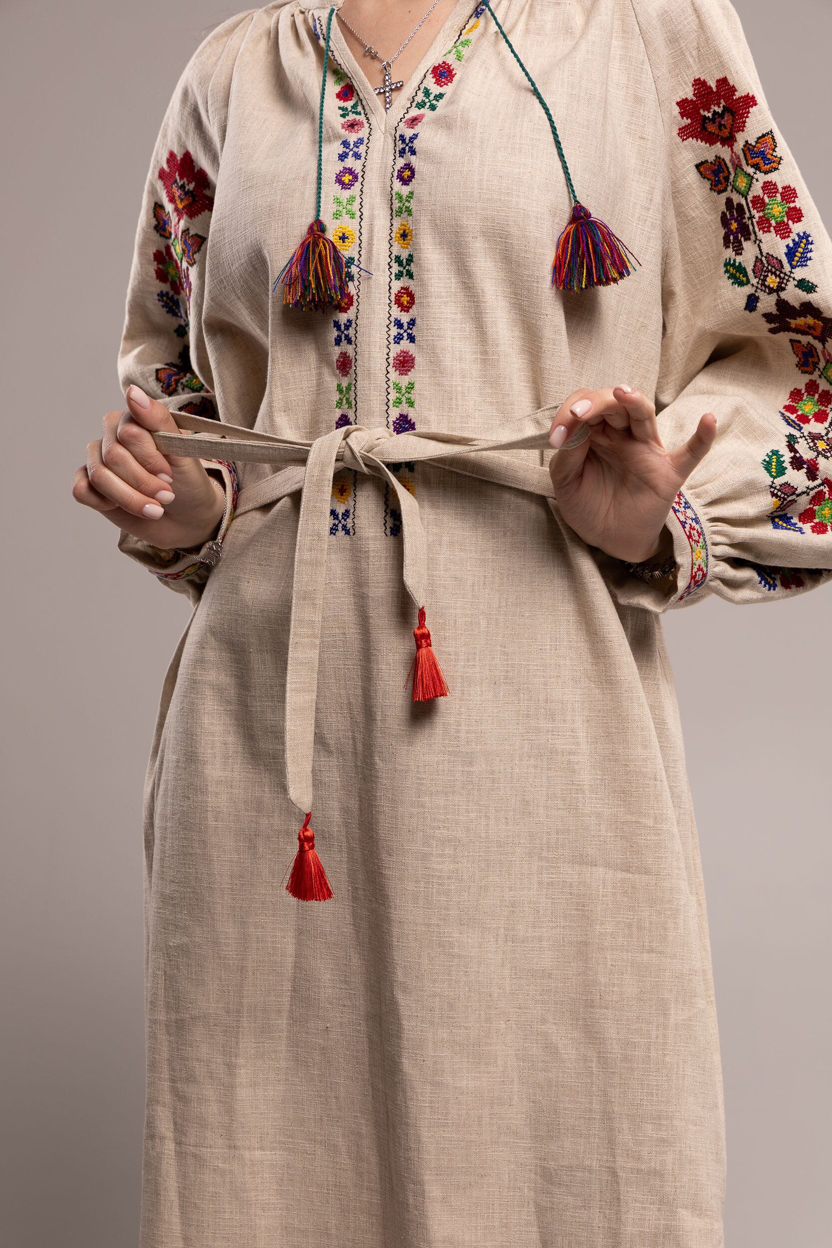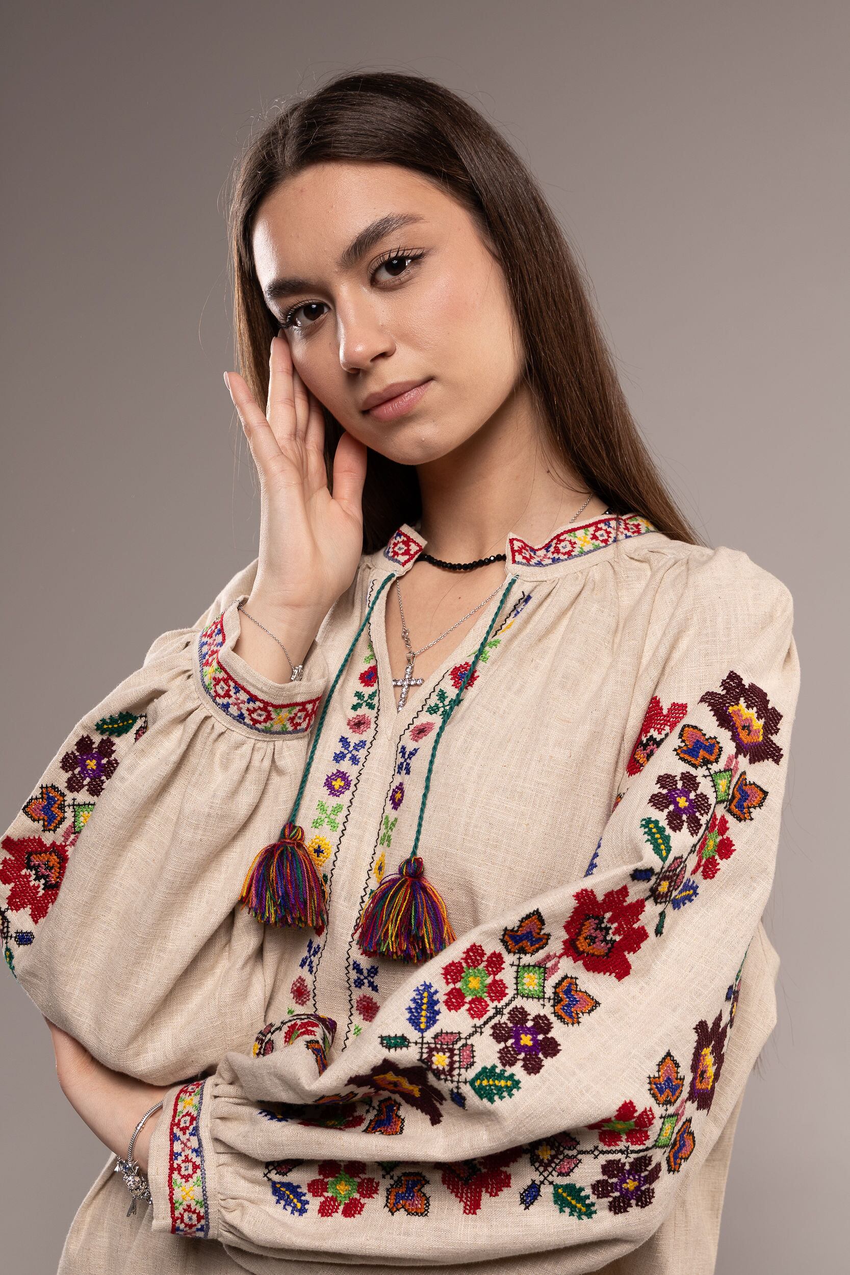 ウクライナ刺繍ヴィシヴァンカ・クラシック コロミヤ 手刺繍 麻 レディース・フリーサイズ