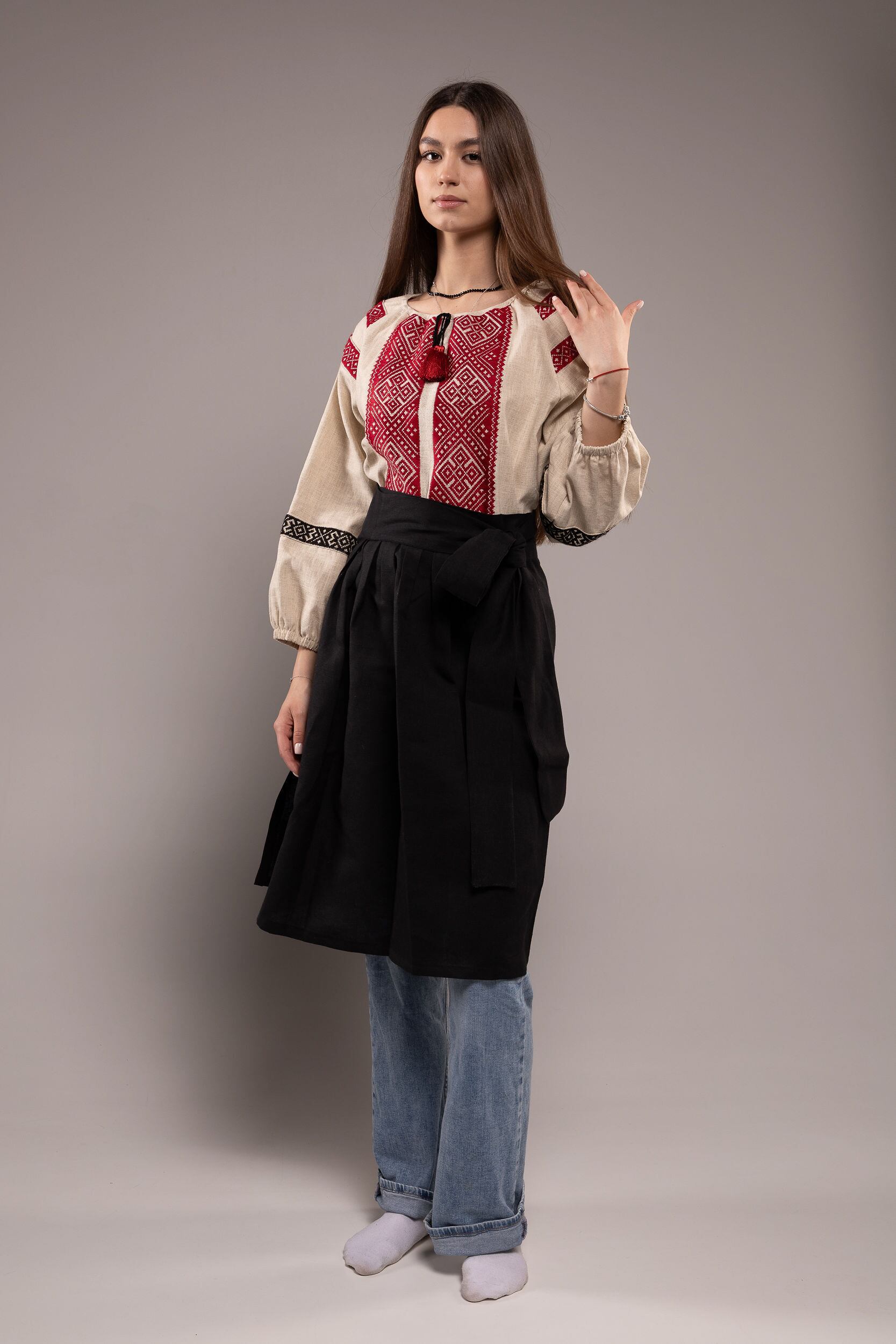 この作品は、ウクライナの伝統と美しさを象徴するヴィシヴァンカの刺繍を採用しています。過度な派手さを追求せず、日本の日常生活に自然に溶け込むデザインとなっております。しかし、それでいて洗練された高級感とカジュアルな雰囲気を両立させ、見る人を魅了する一着となっています。