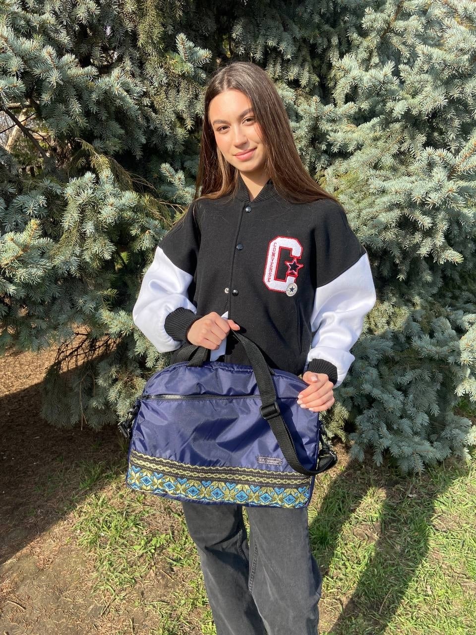 さらに、表面にはウクライナの伝統的なクロスステッチ手刺繍「ヴィーシフカ」が施されており、職人の手による細やかなデザインが一つひとつ異なる、一点物の魅力を持っています。上品で洗練された刺繍が、ビジネスシーンだけでなくカジュアルな装いにも自然に馴染みます。