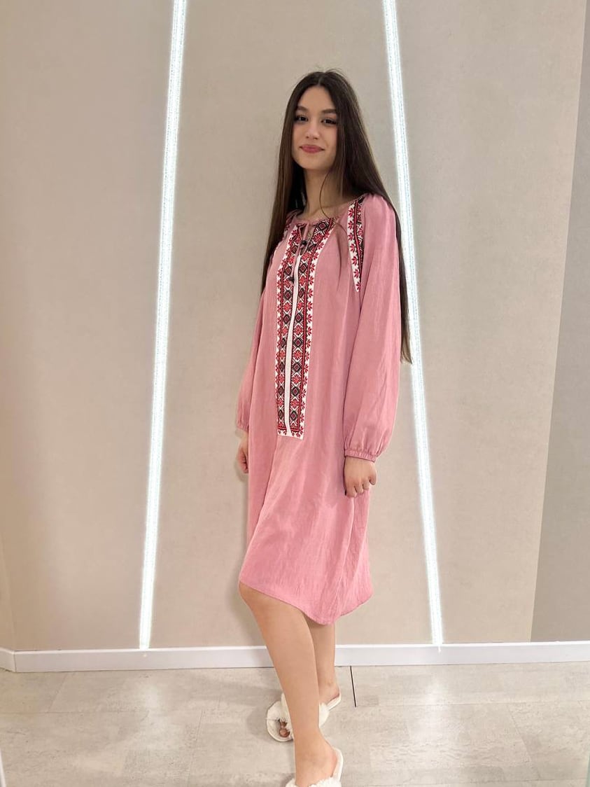 このドレスは、ウクライナの伝統と美しさを象徴するヴィシヴァンカの刺繍を採用しています。過度な派手さを追求せず、日本の日常生活に自然に溶け込むデザインとなっております。しかし、それでいて洗練された高級感とカジュアルな雰囲気を両立させ、見る人を魅了する一着となっています。