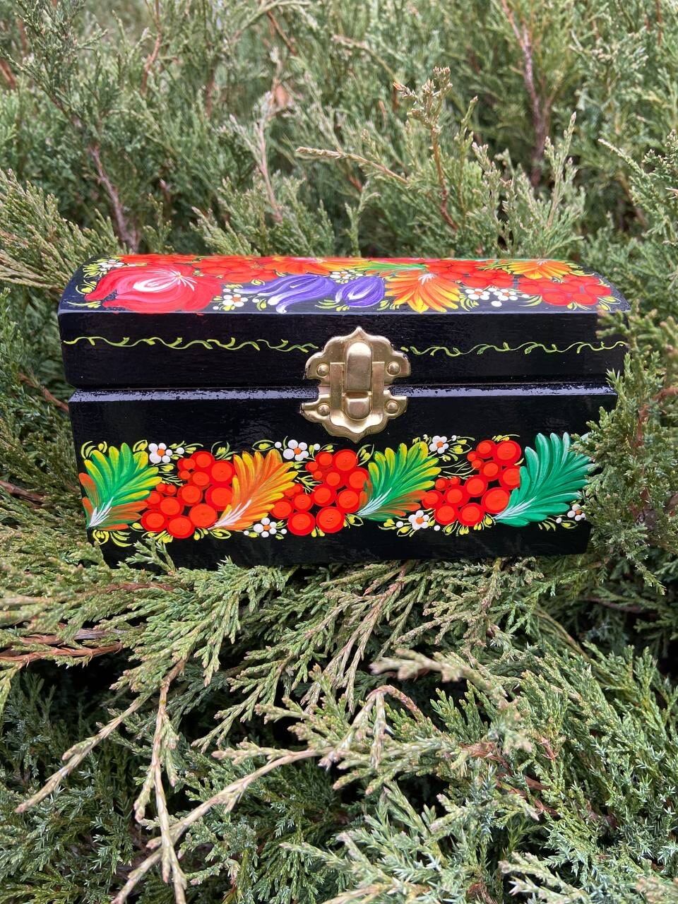 詳細:ペトリキフカ・ジュエリーボックスは、ウクライナの伝統的な芸術、ペトリキフカ塗りの精粋を表現する逸品です。