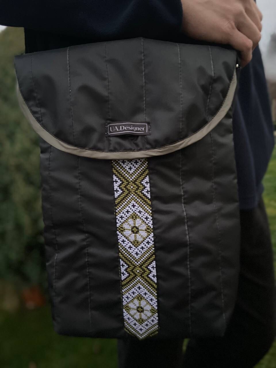 表面には、長時間をかけて手作業で施されたウクライナの伝統手刺繍「ヴィーシフカ」があしらわれており、一点物の魅力と高級感を演出します。デザイン性と機能性を兼ね備えたこのバッグは、最大16インチまでのノートパソコンを収納することができ、日々の通勤や出張に最適なパートナーとなるでしょう。