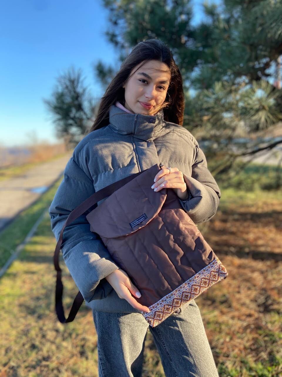 表面には、長時間をかけて手作業で施されたウクライナの伝統手刺繍「ヴィーシフカ」があしらわれており、一点物の魅力と高級感を演出します。デザイン性と機能性を兼ね備えたこのバッグは、最大16インチまでのノートパソコンを収納することができ、日々の通勤や出張に最適なパートナーとなるでしょう。